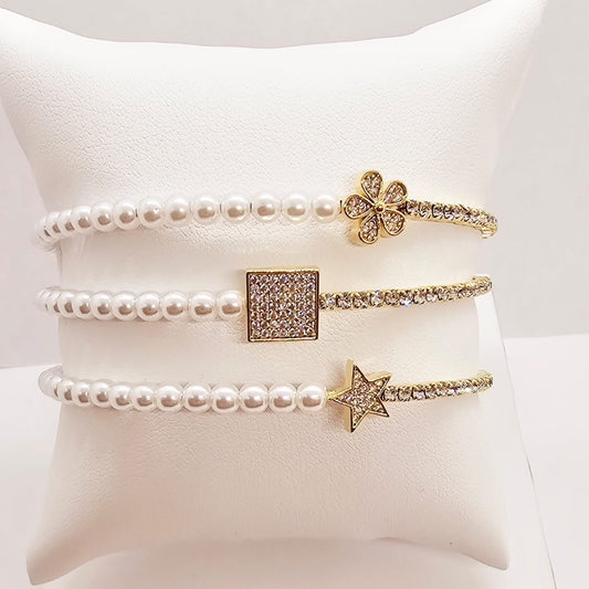 Pearl and CZ Hug Bracelet